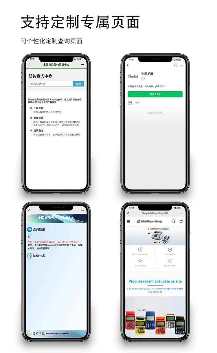 定制可追溯二维码防伪,一物一码,没有重复的二维码,查询页面二维码和标签印刷的二维码可以对比。